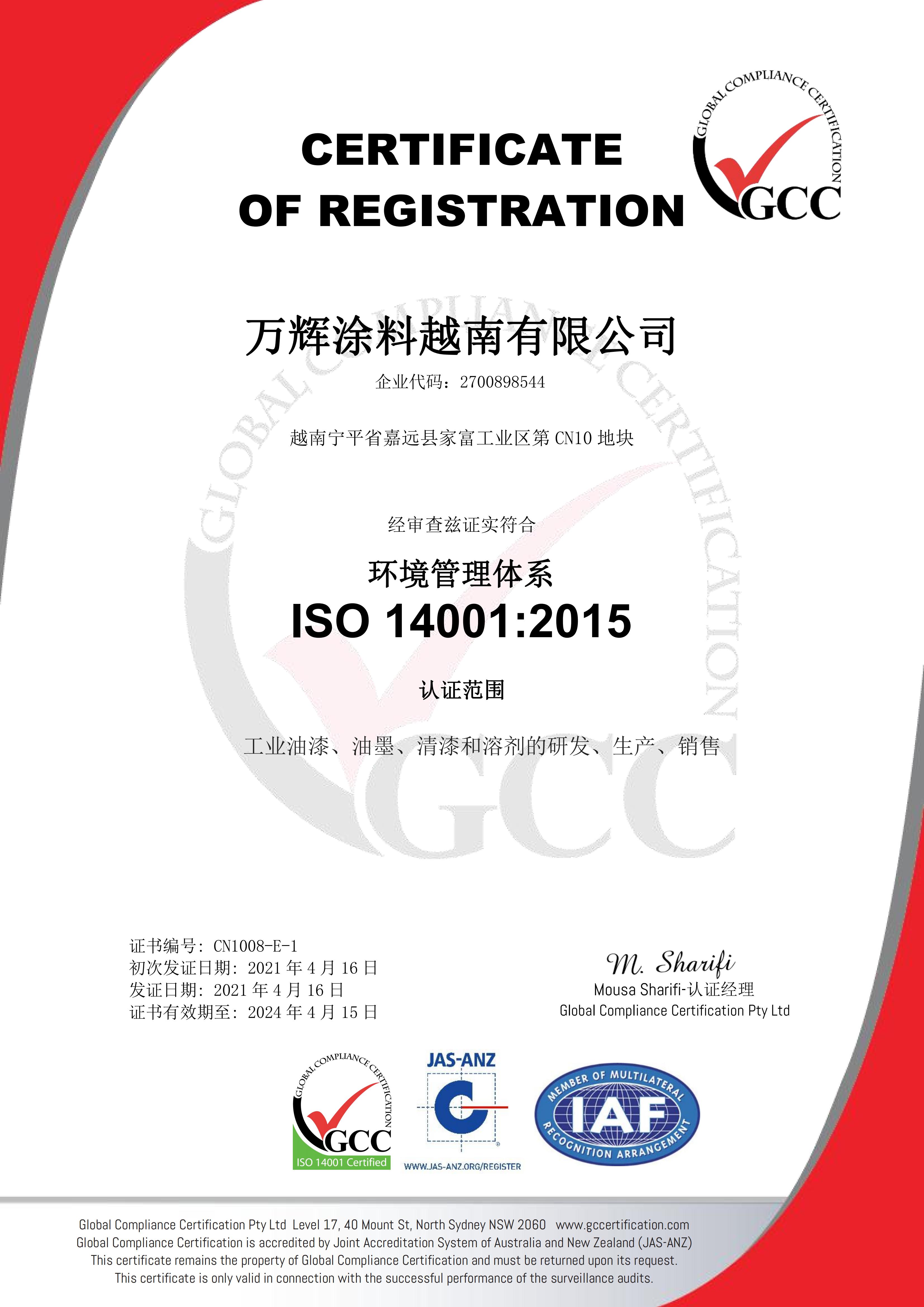 TUV ISO 14001: 2015 (Manfield Vietnam)