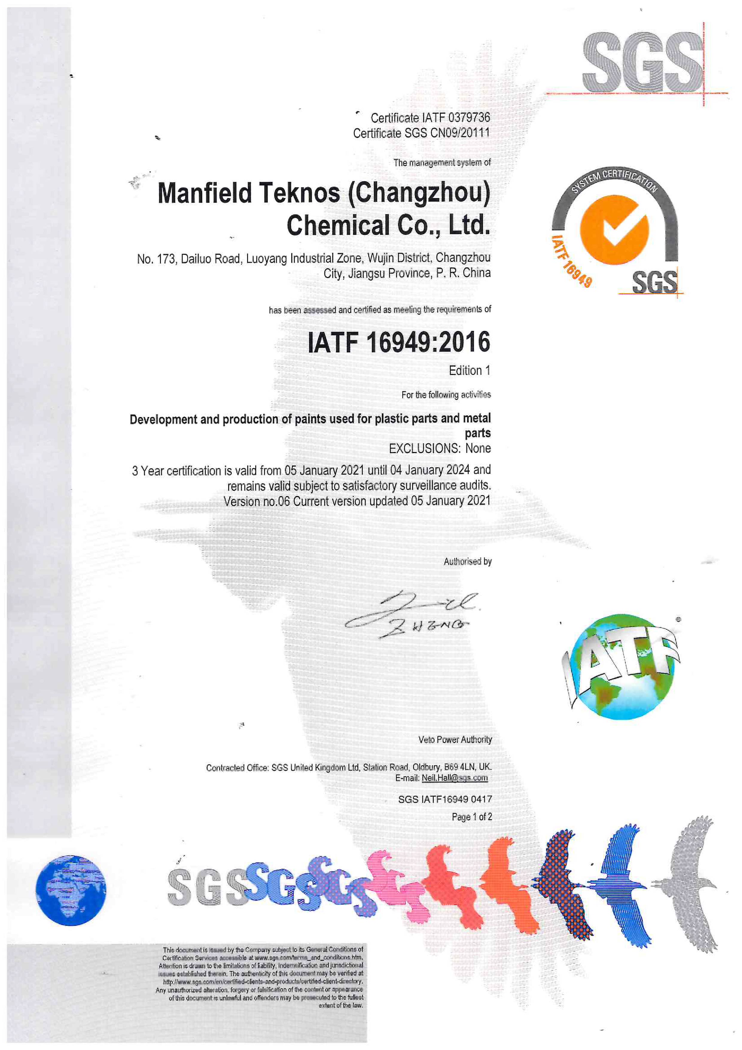 TUV IATF 16949:2016 (Manfield Guangzhou)