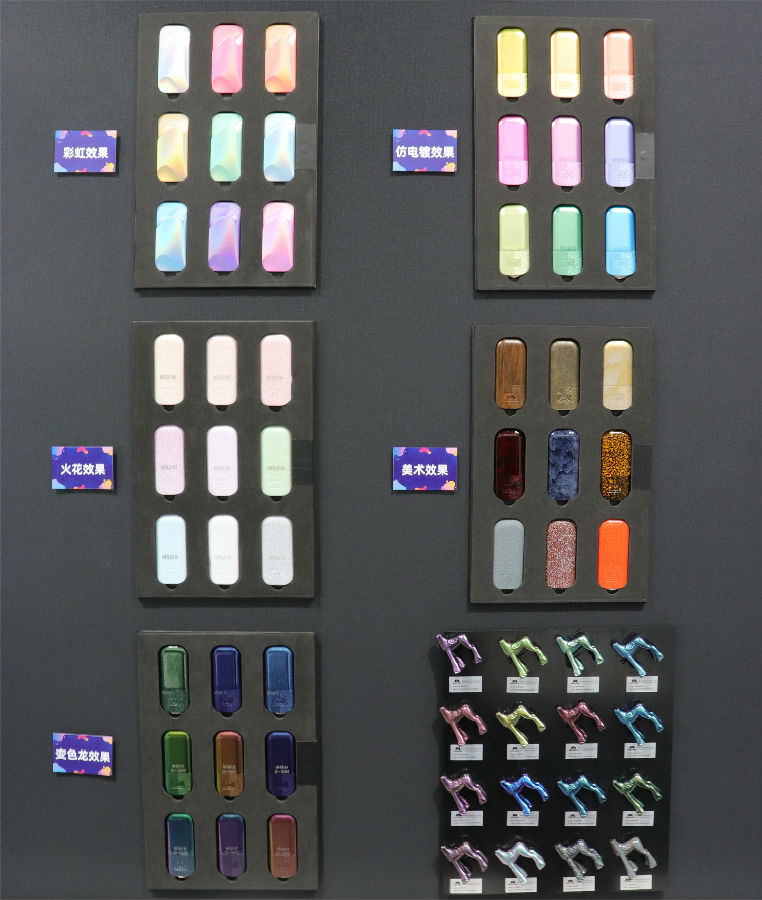 - 擁有啞黑、高光、水轉(zhuǎn)印、雙固化UV、手感漆、電鍍銀和烤漆等系列油性、水性環(huán)保產(chǎn)品