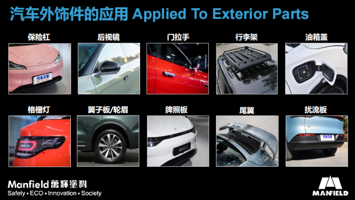 萬輝汽車內(nèi)外飾涂料被廣泛應(yīng)用于納米BOX的前后保險(xiǎn)杠、尾翼、行李架和裝飾條等部件,并為之提供了完美的顏色匹配、高端涂層質(zhì)感與優(yōu)異的涂料性能。