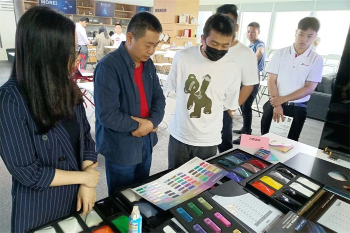 會(huì)議上,針對(duì)感溫變色涂料和感光變色涂料在云頂Oclean智能牙刷主體/裝飾件的應(yīng)用需求,萬(wàn)輝團(tuán)隊(duì)為客戶充分展示了萬(wàn)輝強(qiáng)有力的涂料技術(shù)和產(chǎn)品實(shí)力,并為客戶現(xiàn)場(chǎng)一一答疑解惑并提供有效的解決方案。