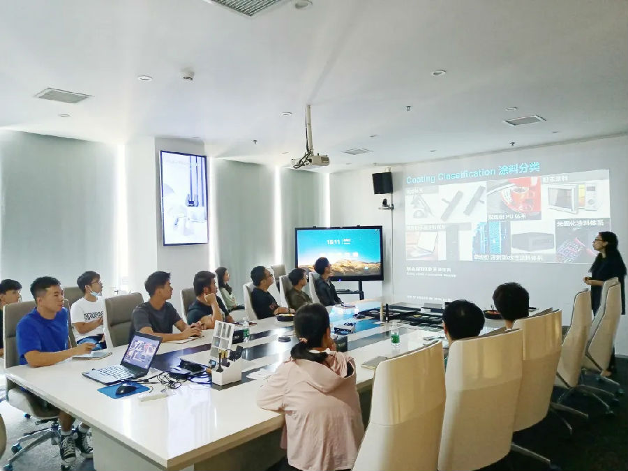 2023年10月25日,萬輝團(tuán)隊(duì)拜訪了深圳齊奧通信公司,雙方就消費(fèi)電子的環(huán)保涂裝與色彩應(yīng)用進(jìn)行了深入的交流探討。▲技術(shù)宣講&萬輝產(chǎn)品展示