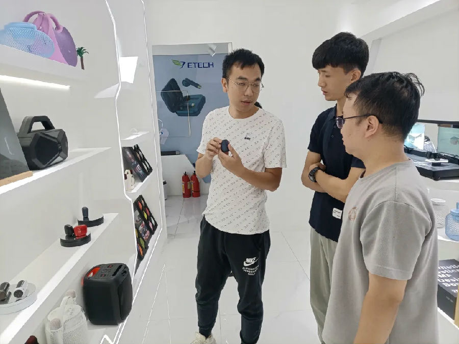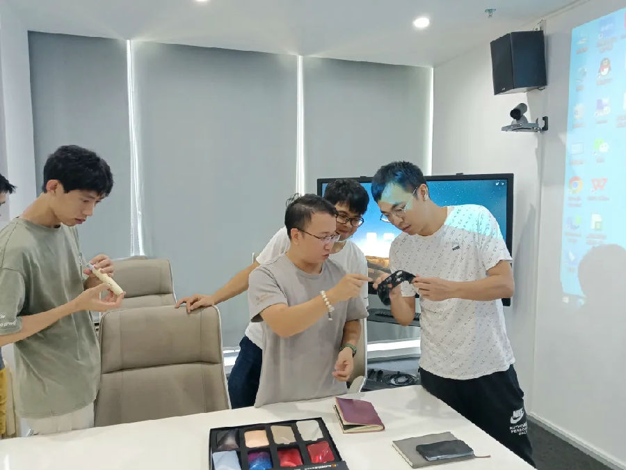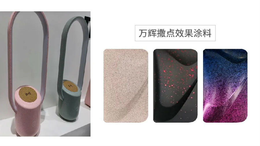 展廳參觀環(huán)節(jié),齊奧團(tuán)隊(duì)為我們?cè)敿?xì)介紹了各類產(chǎn)品的顏色設(shè)計(jì)理念與效果體現(xiàn),讓我們更進(jìn)一步地了解和獲取到客戶產(chǎn)品的實(shí)際應(yīng)用和需求,以便快速精準(zhǔn)地推薦合適的涂料色彩及特殊效果應(yīng)用。同時(shí),我們也為客戶推薦了萬輝UV Monocoat應(yīng)用于藍(lán)牙耳機(jī)、插座和音箱等產(chǎn)品,用一涂替代原有的兩涂工藝(底漆+面漆),實(shí)現(xiàn)真正的降本減耗,且能保持很好的金屬感和耐磨性能。