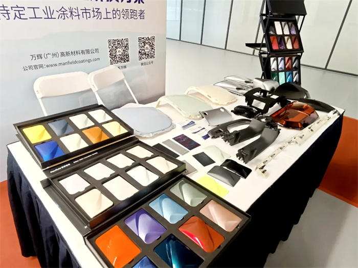 經(jīng)過(guò)前期對(duì)客戶需求的調(diào)研和配套的產(chǎn)品升級(jí),萬(wàn)輝展臺(tái)迎來(lái)了廣汽研究院團(tuán)隊(duì)的重點(diǎn)關(guān)注和進(jìn)一步的深度交流。我們向客戶展示了萬(wàn)輝云石效果漆、仿電鍍銀效果漆、抗指紋效果漆、極度啞黑漆、高亮光鋼琴黑、UV打印效果、冰花效果和眾多當(dāng)下流行色彩等,其中,萬(wàn)輝云石效果漆、仿電鍍銀效果漆和極度啞黑漆等備受客戶的青睞與認(rèn)可。