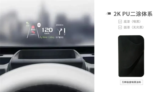 萬(wàn)輝0.2°極度啞黑漆應(yīng)用于汽車(chē)車(chē)載抬頭顯示系統(tǒng)、除霜格柵等內(nèi)飾件,油漆光澤度基本接近0o,其漆膜表面光的反射率極低,能有效地解決普通涂料涂裝后所存在的炫光、反光等弊端,大大地提高了汽車(chē)內(nèi)飾功能件使用的安全性。