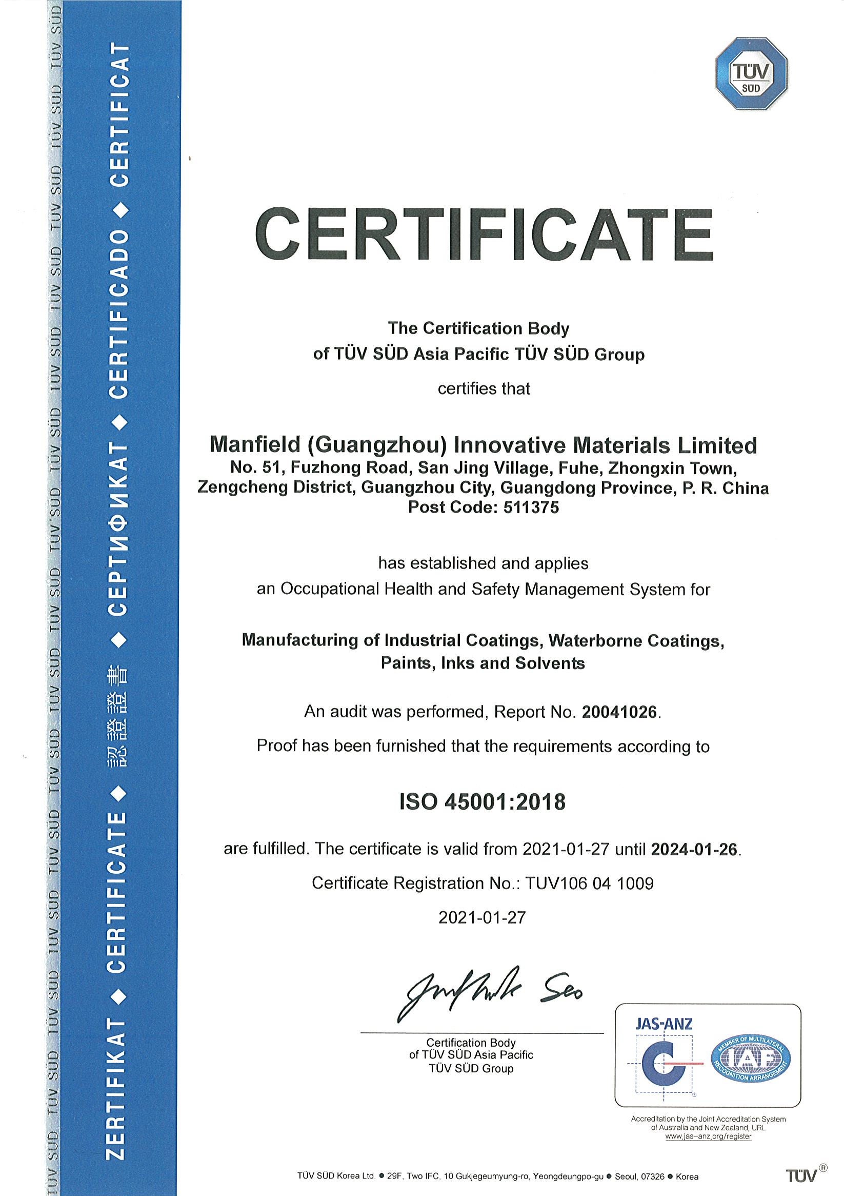 TUV ISO 45001:2018 (Manfield Qu?ng Chau)